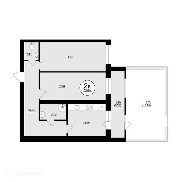 2 комн. квартира в Самаре в ипотеку от 75 967 руб/месяц