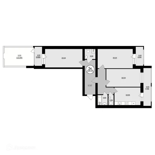 3 комн. квартира в Самаре в ипотеку от 104 987 руб/месяц