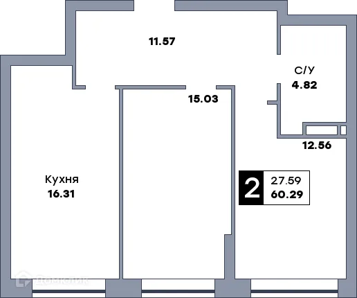 2 комн. квартира в Самаре в ипотеку от 58 610 руб/месяц