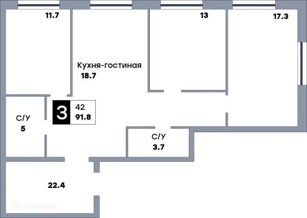 3 комн. квартира в Самаре в ипотеку от 90 564 руб/месяц