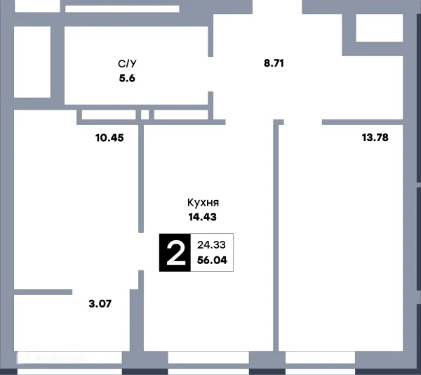 2 комн. квартира в Самаре в ипотеку от 45 205 руб/месяц