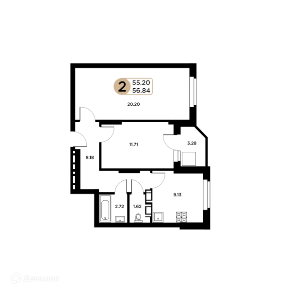 2 комн. квартира в Самаре в ипотеку от 55 130 руб/месяц