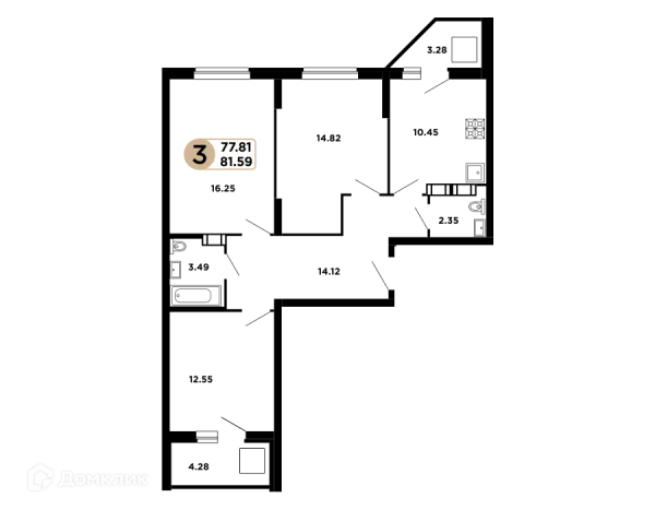 3 комн. квартира в Самаре в ипотеку от 68 657 руб/месяц