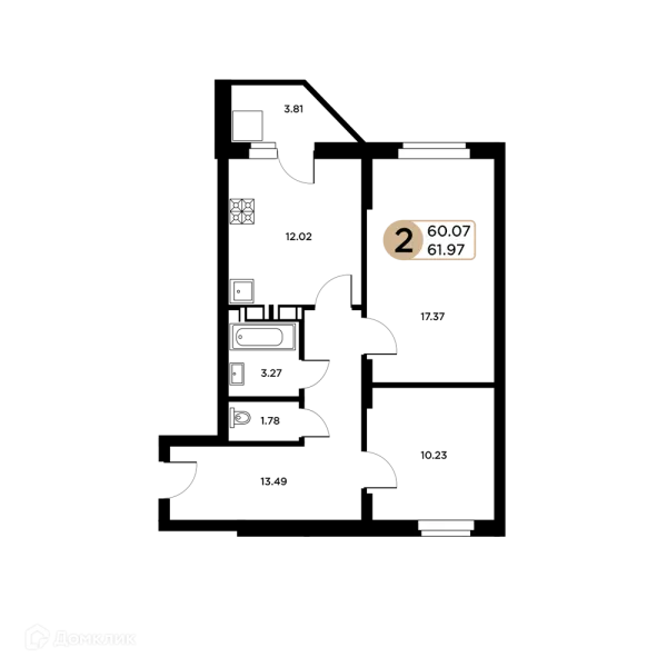 2 комн. квартира в Самаре в ипотеку от 53 229 руб/месяц