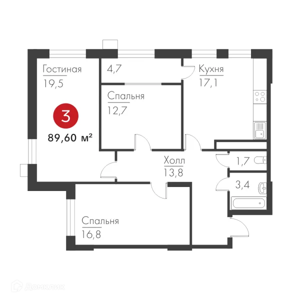 3 комн. квартира в Самаре в ипотеку от 106 397 руб/месяц