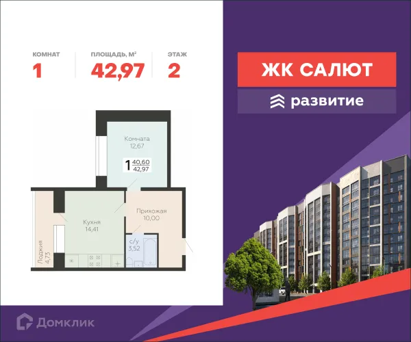 1 комн. квартира в Самаре в ипотеку от 39 948 руб/месяц