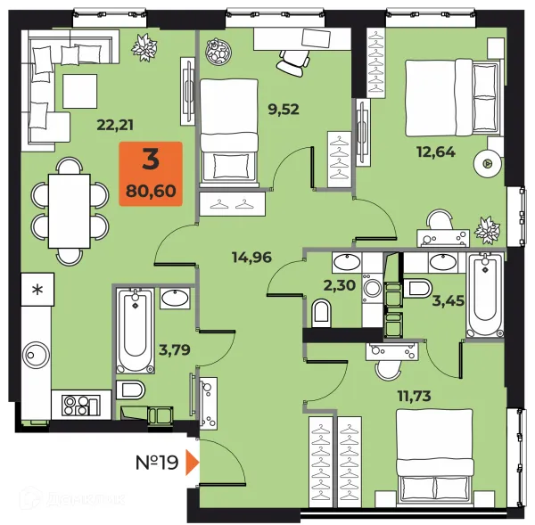 3 комн. квартира в Самаре в ипотеку от 136 631 руб/месяц
