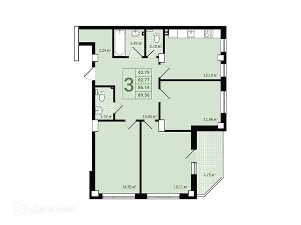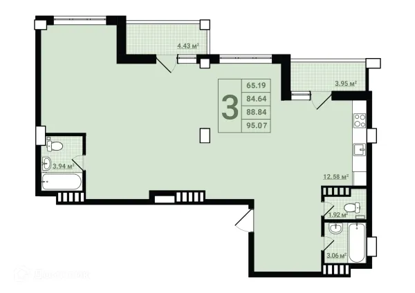 3 комн. квартира в Самаре в ипотеку от 87 969 руб/месяц