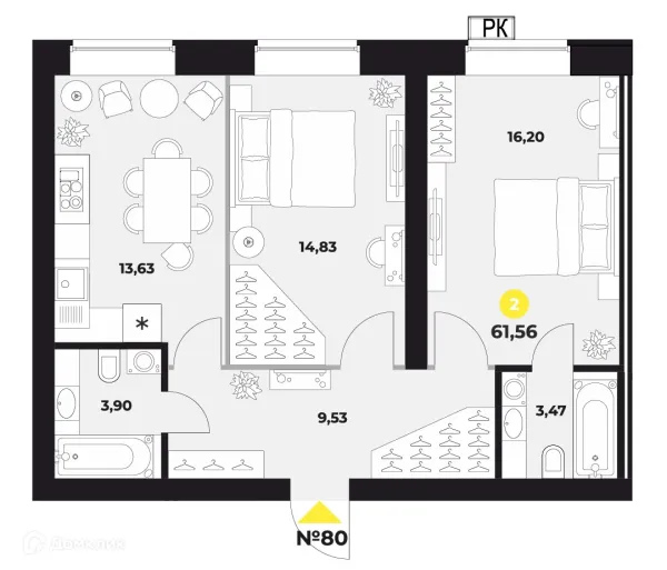 2 комн. квартира в Самаре в ипотеку от 92 640 руб/месяц