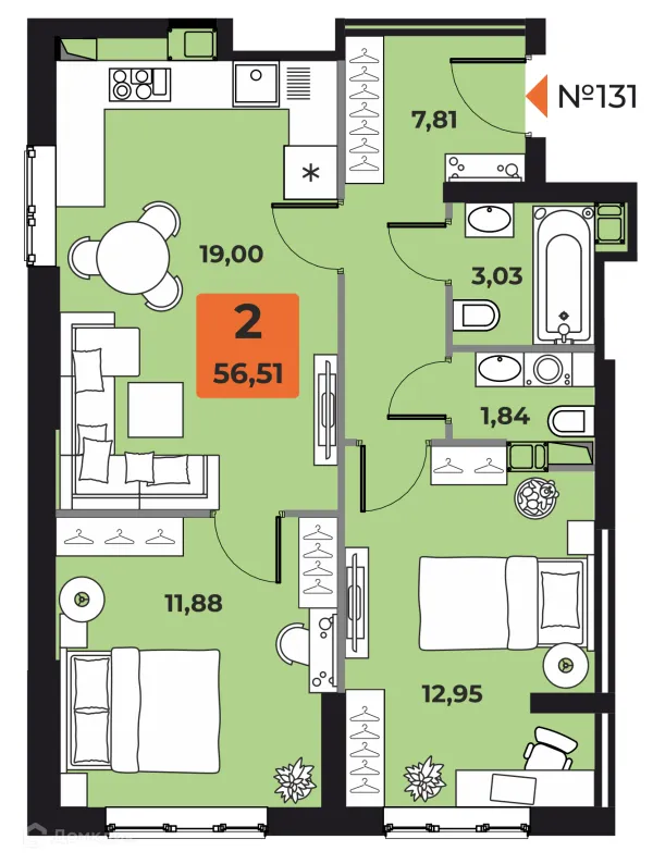2 комн. квартира в Самаре в ипотеку от 76 755 руб/месяц