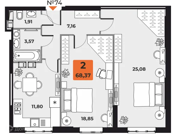 2 комн. квартира в Самаре в ипотеку от 74 368 руб/месяц