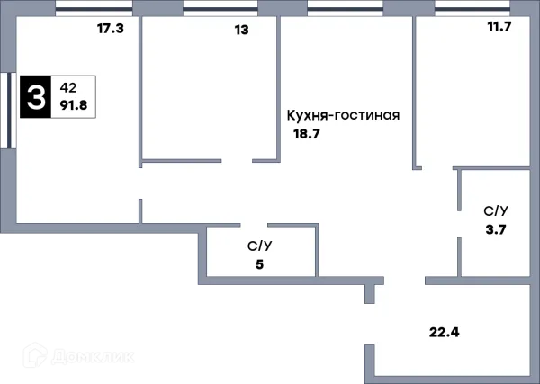 3 комн. квартира в Самаре в ипотеку от 91 225 руб/месяц